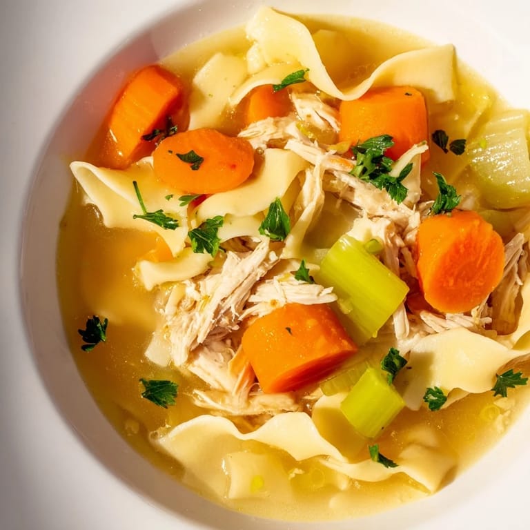 Save There's something about the way steam rises from a bowl of chicken noodle soup that stops everything else. I was home sick one winter, barely able to think straight, when my neighbor brought over a pot of this exact soup—nothing fancy, just chicken, vegetables, and noodles in a golden broth. I ate it straight from the pot, spoon after spoon, and felt genuinely better. Since then, I've made it dozens of times, and I've learned it's one of those dishes that tastes even better when you make it yourself.