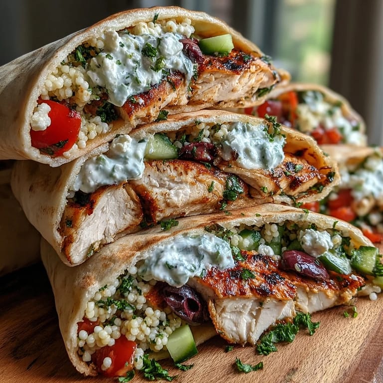 Once you understand how these flavors work together, the door opens to infinite possibilities—I've made these with grilled shrimp, roasted chickpeas for vegetarian nights, even thinly sliced grilled lamb when I'm feeling fancy. The tzatziki and couscous salad form a reliable foundation that welcomes almost any protein you want to layer in.