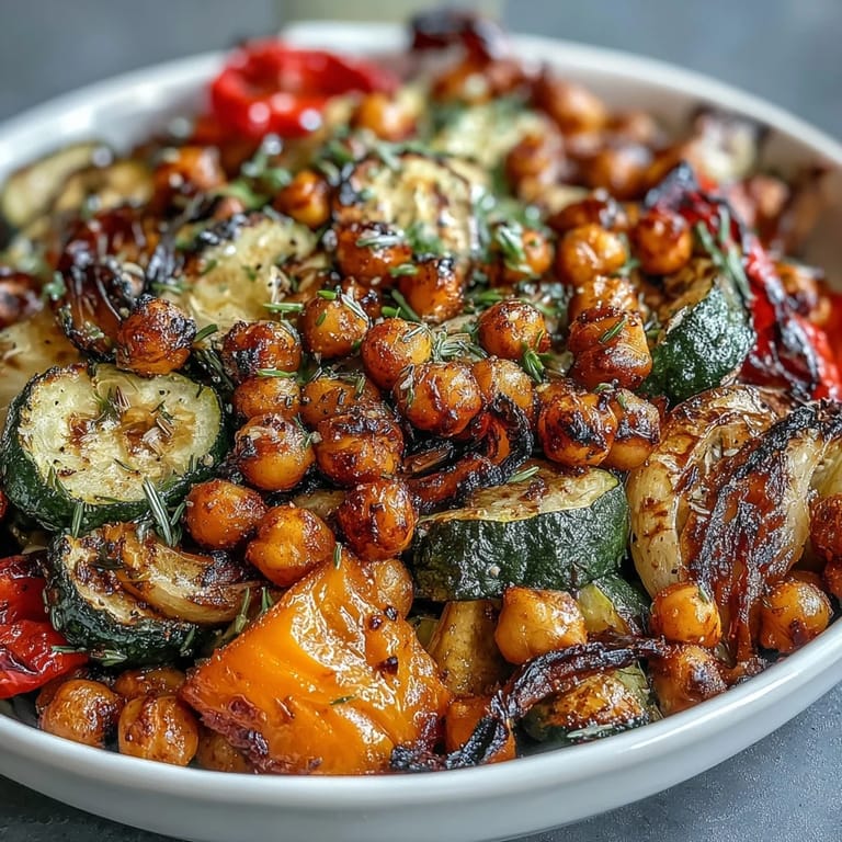 Save My neighbor knocked on my door one summer evening with a bowl of roasted vegetables that tasted like sunshine and garlic. She'd thrown together whatever she had on hand—zucchini, peppers, chickpeas—and the simplicity of it struck me immediately. I asked for the method, and she laughed, saying there barely was one: just toss, roast, taste. That casual confidence is exactly what I love about this dish.