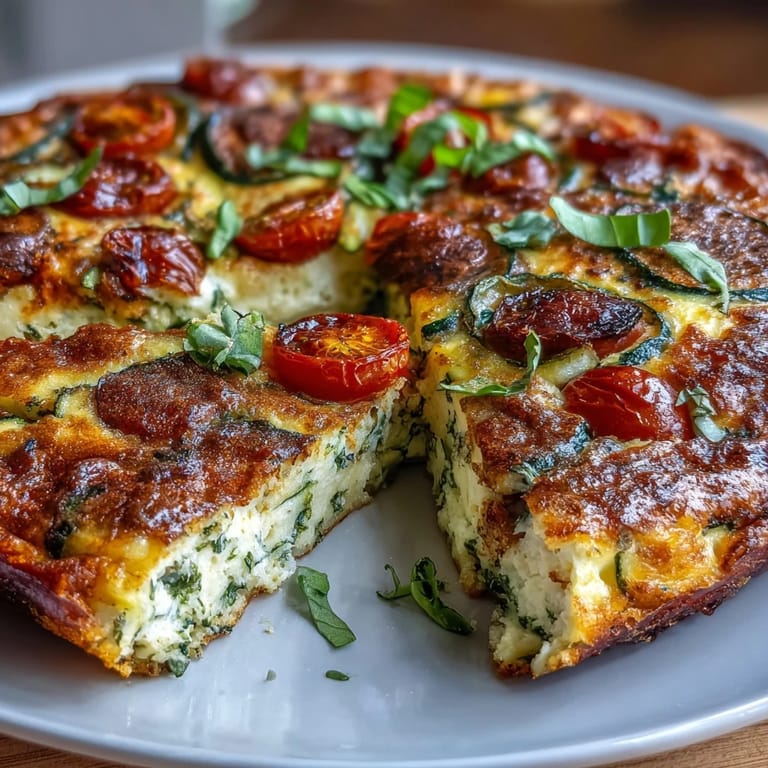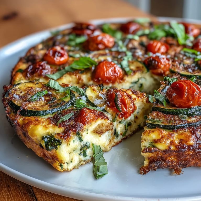 Save There's something magical about a frittata that combines simplicity with nourishment. This Light Zucchini and Tomato Frittata transforms humble ingredients into a fluffy, protein-packed meal that's as suitable for a quiet breakfast as it is for entertaining guests. The vibrant colors of green zucchini and ruby tomatoes create a feast for the eyes, while the delicate herbs infuse the dish with Mediterranean aromas that transport you to an Italian countryside.