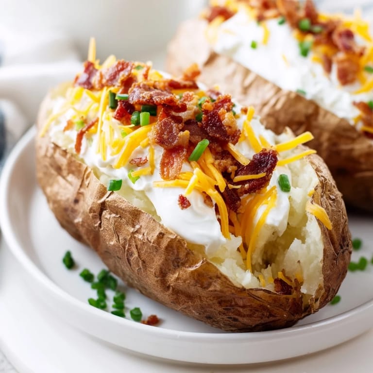 Save There's something about the smell of a baked potato fresh from the oven that makes me think of Friday nights at my grandparents' house, when dinner was simple but felt like a celebration. My grandfather would always insist that the best potatoes were the ones you didn't fuss over too much, just salt, butter, and whatever toppings were on hand. Years later, I realized he was onto something—the magic isn't in complexity, it's in letting each ingredient shine without apology. Now, loading a potato with crispy bacon, melted cheese, and cool sour cream feels like I'm honoring that same philosophy while making it my own.