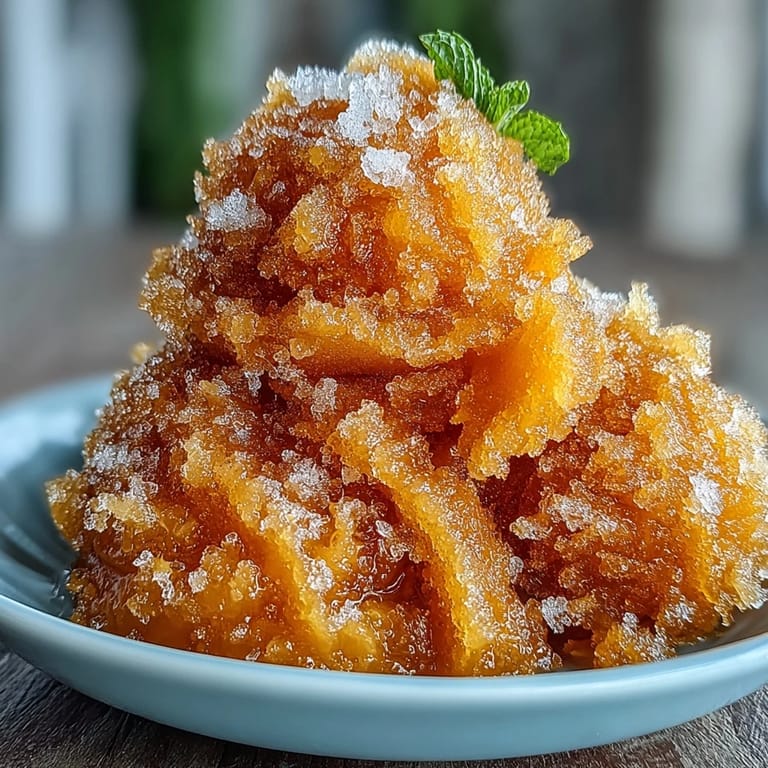 Save There's a particular kind of magic that happens when you bite into mango granita on a sweltering afternoon—that moment when the icy crystals dissolve on your tongue and suddenly the heat feels manageable again. My first encounter with this dessert was completely accidental; I'd overestimated how much mango I could eat fresh and decided to freeze what remained, only to discover that scraping it with a fork created something far more elegant than I'd imagined. What started as a way to salvage fruit became a ritual I return to whenever summer threatens to overwhelm me.