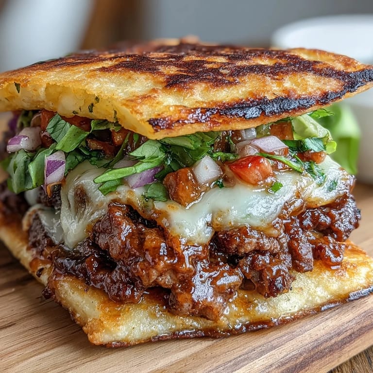 The beauty of this recipe lies in the cooking technique. By smashing the beef directly onto the tortilla in a hot skillet, you create a perfect sear and a flavorful crust that bonds the meat to the base, ensuring every bite is packed with classic burger goodness.