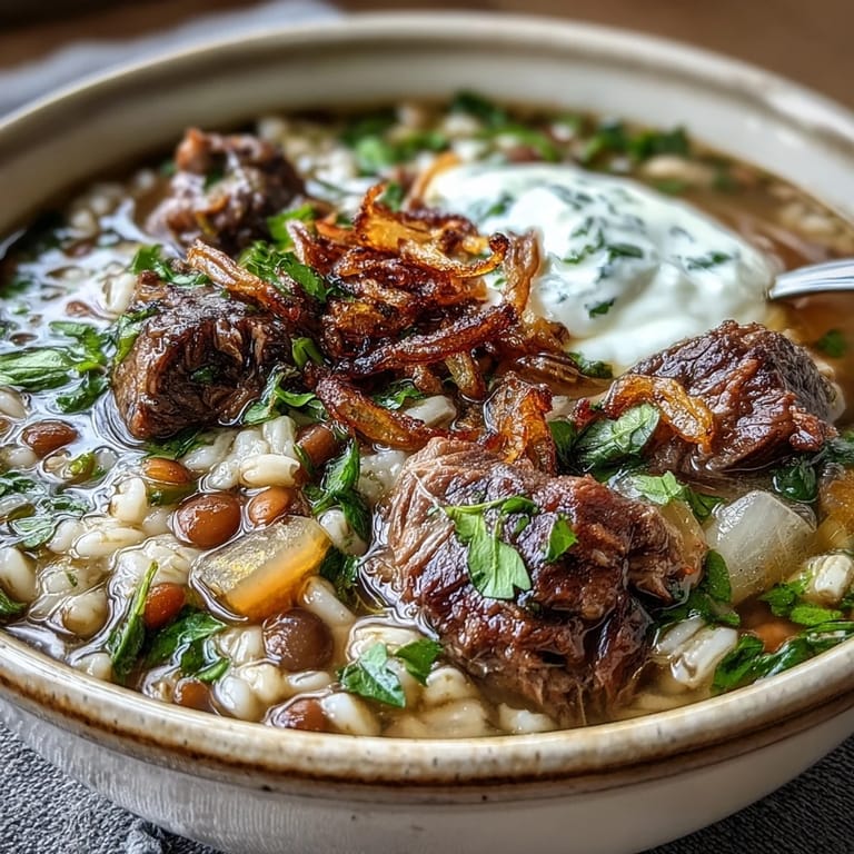 Save The first time the aroma of frying mint hit me I was huddled in a drafty kitchen while the rain rattled against the windows. My neighbor had brought over a steaming bowl of this Persian inspired soup explaining that it was the only cure for a grey Tuesday. I remember how the green herbs swirled into the thick creamy base like a watercolor painting. It was not just a meal it was a warm hug that smelled like spring and winter at once.