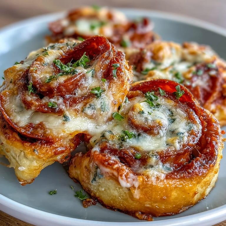 Save The aroma of butter and herbs sneaking out from the oven always pulls me back to the afternoon I improvised these pizza pinwheels for a spontaneous movie night. It wasn't a grand plan—just a craving for something warm, melty, and good for sharing, and the odds and ends in my fridge pointed me straight to this flaky, cheesy bite. Watching the pastry puff into golden spirals around gooey cheese and pepperoni is always a small kitchen thrill. I still catch myself grinning at the hiss and sizzle when the cheese bubbles just right. There’s just something festive about a tray of these wheels disappearing fast.