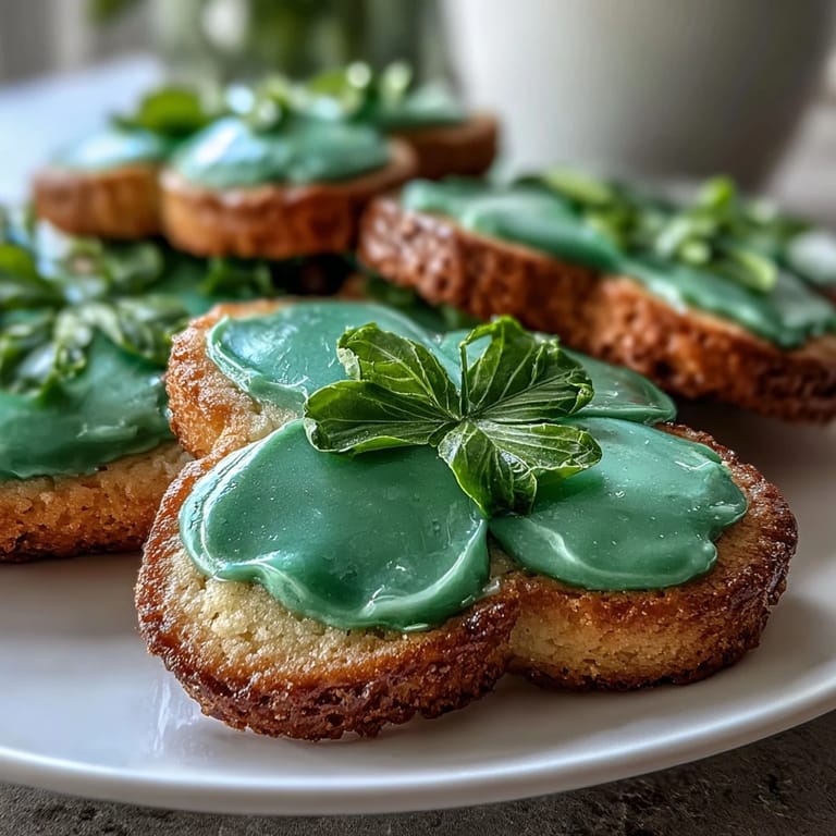 The combination of a traditional sugar cookie base with elegant royal icing creates a dessert that's both approachable and impressive. The dough is easy to work with, rolling out smoothly and holding its shamrock shape perfectly during baking. The royal icing sets to a beautiful, glossy finish that won't smudge, making these cookies ideal for stacking, packaging, or displaying on a festive platter. With a medium difficulty level, this recipe is perfect for bakers who have some experience with cookie decorating but is still accessible enough for enthusiastic beginners willing to take their time with the icing process.