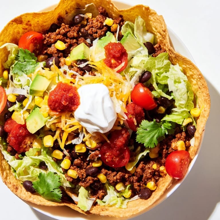 Save The first time I made taco salad, I was trying to impress someone who'd just moved in next door, and I wanted something that felt special without being intimidating. I'd seen those crispy tortilla bowls at restaurants and thought they looked impossible to recreate at home, but then I realized you could just drape them over a bowl in the oven and let the heat do the work. That moment of pulling out a perfectly golden, edible vessel felt like a small kitchen triumph, and suddenly I had a dish that looked restaurant-quality but was genuinely simple.