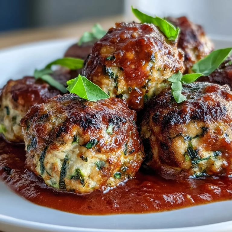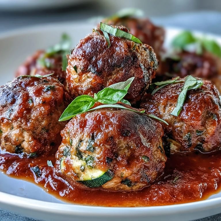 Save There's something quietly satisfying about making meatballs that don't require breadcrumbs or dairy to taste incredible. I discovered this version one weeknight when my fridge held ground turkey, a slightly wrinkled zucchini, and an inexplicable craving for something both comforting and actually good for me. The magic isn't in complicated technique—it's in letting vegetables do the work, keeping things simple, and letting the oven handle the heavy lifting while you make a sauce that tastes like it simmered all day.