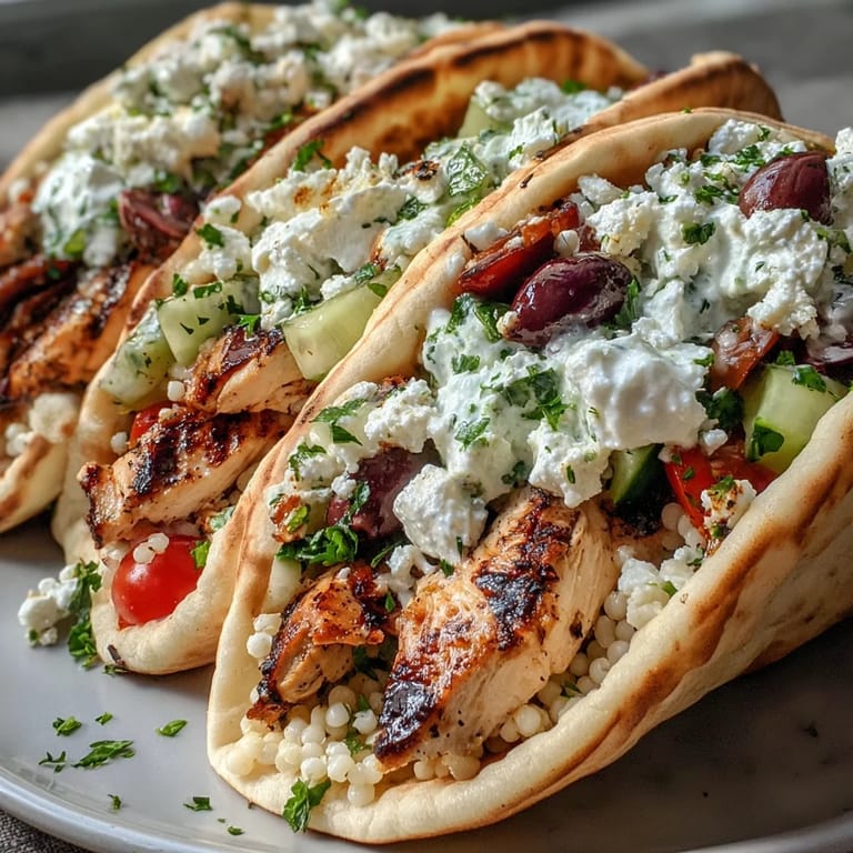 Save There's something about the smell of lemon and oregano hitting a hot pan that instantly transports me to a sun-drenched kitchen somewhere along the Mediterranean coast, even when I'm just standing in my apartment on a regular Tuesday. My neighbor brought over a container of homemade tzatziki one summer, and instead of just eating it with chips like a normal person, I became obsessed with building an entire meal around it. This pita became my answer, layering in chicken I'd marinated with every Greek herb I could find, a bright couscous salad that actually keeps you full, and enough feta to make it feel indulgent without being heavy. Now it's my go-to when I want something that tastes like a vacation but takes less time than ordering takeout.